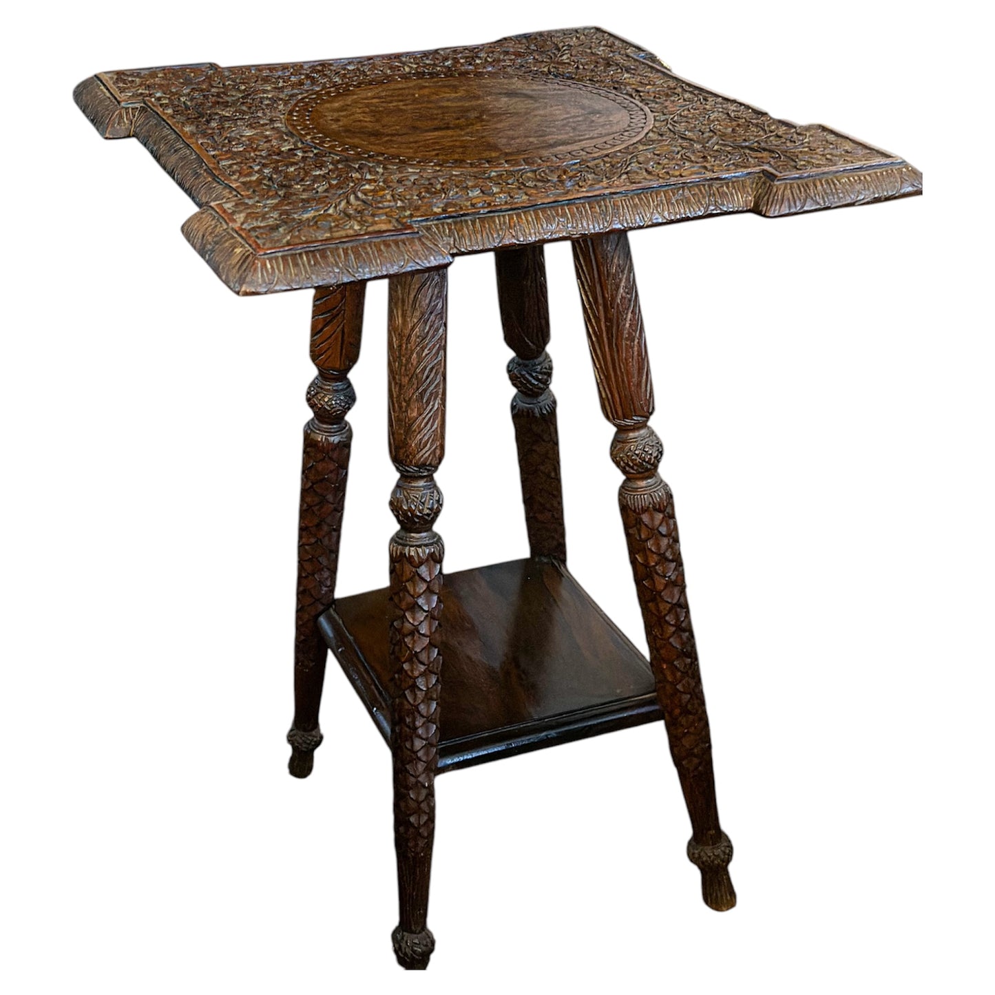 Stunning Anglo-Indian antique carved two tier side table Jardiniere. Early 20th century